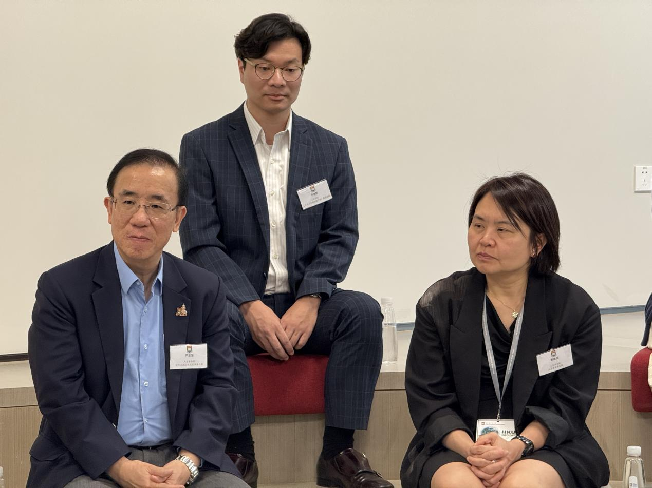 ▲香港大學收生及國際生交流事務總監嚴志堅教授(前左)、香港大學入學事務部總監郭瑛琪(前右),介紹了港大最新的收生政策。