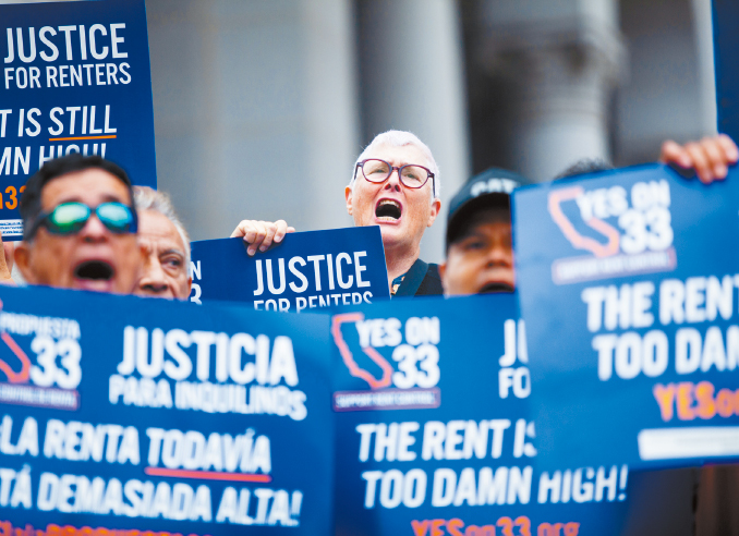 支持33號提案陣營同樣投入大量資金宣傳。圖為10月15日在洛杉磯一場支持33號提案的集會。美聯社資料圖