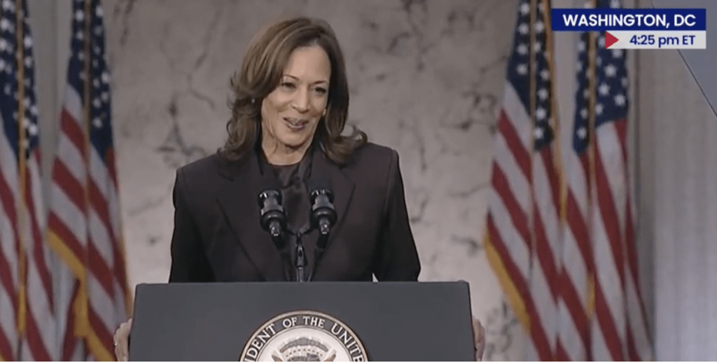 哈里斯在當地6日下午回到母?;羧A德大學向支持者發表落選宣言,這是她在敗選后首度公開露面。