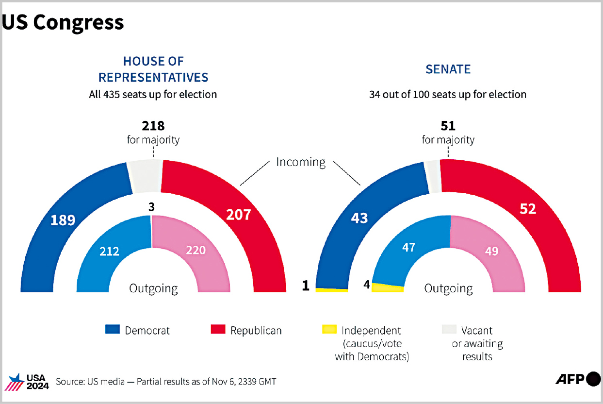 目前,共和黨已經重新取得參議院的控制權,并在眾議院改選中稍為領先。 法新社