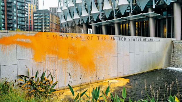 首頁>美國>社會 抗議特朗普勝選,英環保分子向美使館噴漆 發布時間:2024-11-08 08:58 英國環保人士周三向美國駐倫敦大使館建筑物墻壁,噴灑橙色油漆,抗議美國共和黨候選人特朗普在總統大選中勝出,倫敦警方逮捕了兩名涉嫌刑事毀壞的男子,年齡分別25歲和72歲。環保團體“停止石油”(Just Stop Oil)在社交平臺X上傳的影片,可見2人在美國大使館入口的墻上噴橙色漆?!巴V故汀敝赋觯骸疤乩势談龠x,讓平民百姓的性命處于險境,對每個地方而言都是如此?!边@個環保團體曾在英國發起多場高調的抗議活動,包括向梵高的畫作潑灑湯汁。 以上內容歸星島新聞集團所有,未經許可不得擅自轉載引用。 專題 更多 > 中芯國際上半年營收預計超22億美元,四季度將試產7nm工藝 太興盈喜料多賺逾3倍,指將堅守審慎理財政策 中國移動半年多賺5%,中期息增近6% 清華女學霸創業、一年一融資,鎂佳股份估值9.3億美元沖刺港交所 應收賬款走高,豐沃股份三成收入打“白條” 惠科股份IPO:獲政府補助超53億,向實控人堂弟采購超8億 關稅戰|白宮:特朗普簽行政命令,對華關稅暫緩期再延長90日 高盛:64%關稅成本由美企“買單”,消費者僅承擔22% 美媒:特朗普政府通過關稅施壓,要求買美國軍火 熱門文章 特朗普當選,顧立雄急赴“總統府”開會!陳揮文爆內幕:別怕 緊追京華城弊案,北檢6度提訊沈慶京及應曉薇 男藝人西門町住處“嘿咻13歲女”,餐廳打工維生月收入曝光 劉濤救“破產富商”秒復出!“1年狂接18部戲”還清13億 江西美女鄉官李佩霞案今日開庭,曾為升職獻身兼受賄 習近平向美國當選總統特朗普致賀電 人生第一次能自由上網,赴俄作戰一萬朝鮮兵竟“沉迷色情片”? 53歲江美儀失婚8年自爆玩交友App找壯男,不抗拒“炮友” 馬斯克要求SpaceX臺灣供應商將生產線移至海外 ArtCan藝文聚焦 | 香港博物館節2024,博古繽紛文化傳承