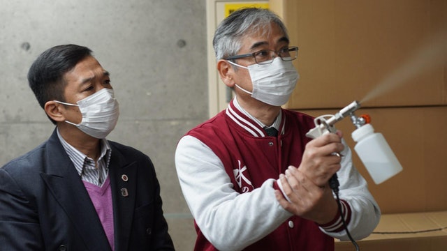 游飚(左)于2004年創立環境工程公司,專門負責去甲醛的工作。