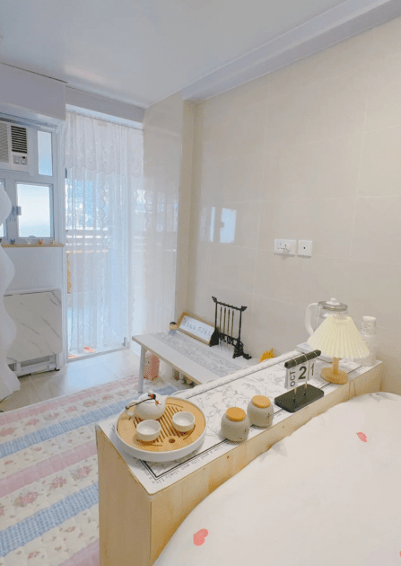 日前,有網民于小紅書分享拼多多買家具翻新舊樓的經歷,并上載單位布置前后對比圖片,大方公開拼多多店家推薦。 樓主表示自己在香港租了一間“老破小”單位,在拼多多花了幾百元就布置好全屋! 樓主租住的單位有戶外露臺,樓主在拼多多購入兩張露營椅、一張小圓茶幾、白色枱布布置,茶幾上放置品茶用具及精美紙巾盒套,就構成一個舒適的城市后花園空間。 至于屋內,樓主就在床尾放置一個柜,間隔開睡覺與休息空間,亦可以放置雜物,一舉兩得。