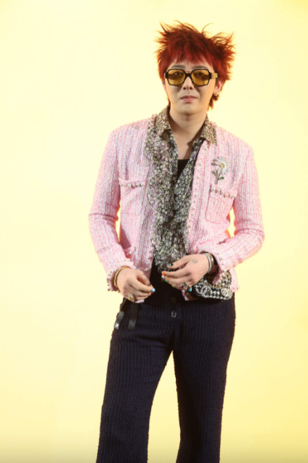 G-Dragon上周旋風式赴港出席Chanel時裝秀,機場Look以品牌的紅色千鳥格紋針織外套下配牛仔褲,并以印花絲巾當作頭巾,更披在Cap帽以外。 他在翌日出席時裝秀,就以粉紅色花呢外套配碎花波浪褶襯衫。