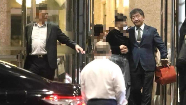 陳時中(右)今天遭國民黨“立委”王鴻薇踢爆,在出席1場飯局后與美女比肩而出。
