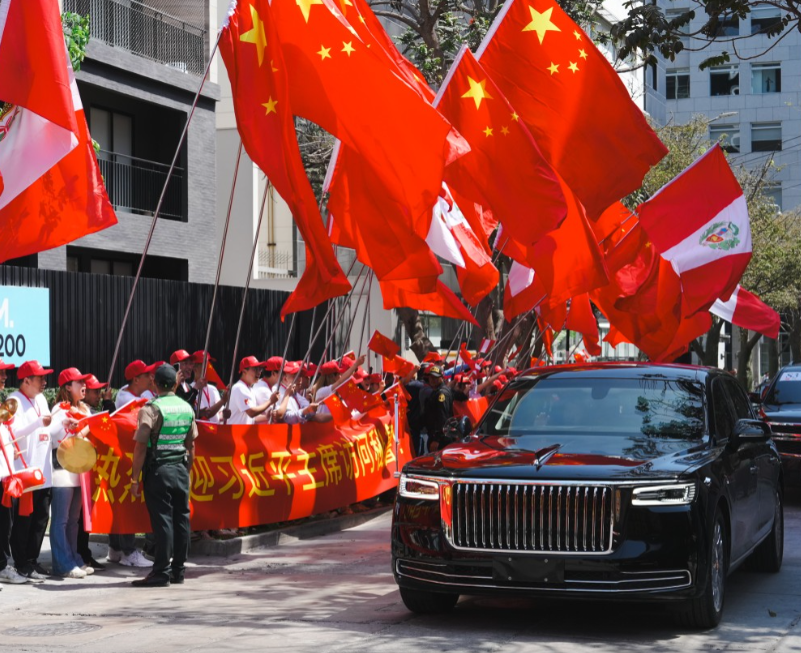 ▲習近平在秘魯使用“紅旗”牌專車。新華社