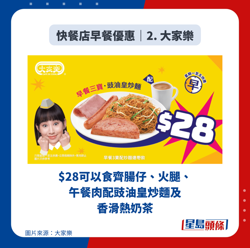 早餐優惠|2. 大家樂 早餐三寶配炒面快閃價$28