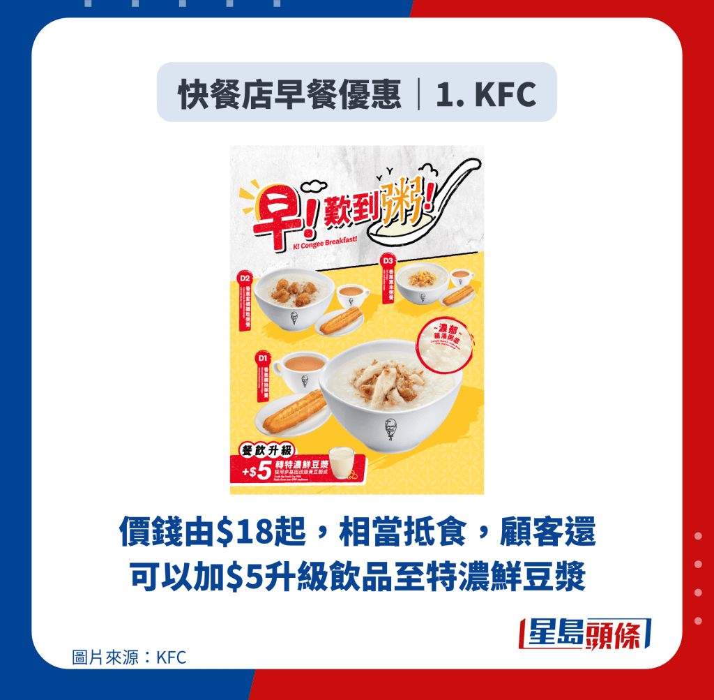 連鎖店早餐優惠合集!7大餐廳最平$18嘆粥配油炸鬼 KFC/大家樂/麥當勞