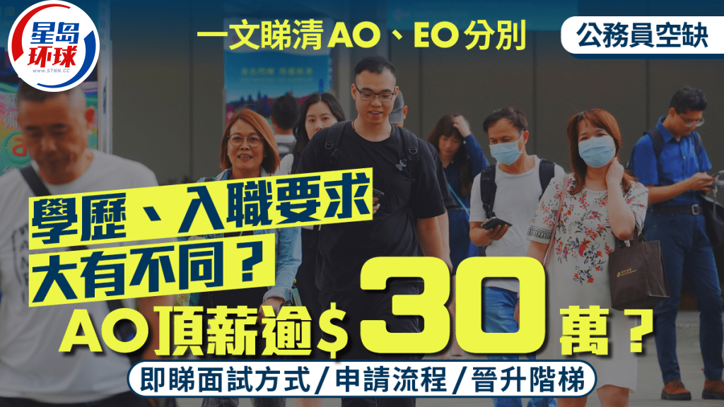 政府公務員職位長期有空缺,一直被視為“鐵飯碗”政府工當中,政務主任(Administrative Officer,AO)和行政主任(Executive Officer,EO)均是政府中最知名、最熱名的職位之一,每年均吸引大量求職人士申請。 本文介紹AO及EO之間有何分別,以及各自的晉升階梯和薪金差異,亦整合入職條件、申請手續、面試流程等最新資訊。