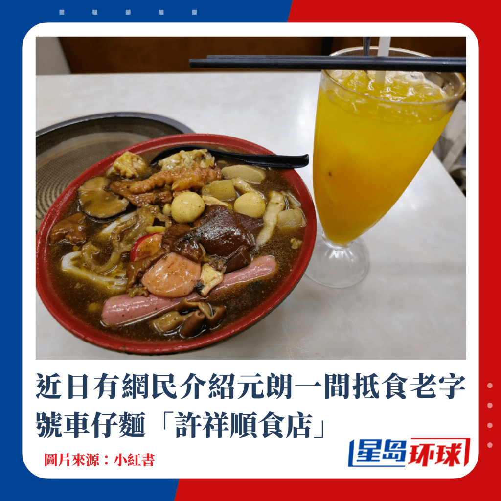 車仔面是港式招牌食物之一,舊時以抵食見稱,隨住時代發展加上經營環境變化,現時車仔面價錢已不如舊時般便宜,要找到抵吃的都不容易。近日,有網民于網上群組介紹一間位于元朗老字號的車仔面“許祥順食店”(前名為許祥昌食店),14餸車仔面只售$40,大贊性價比高!