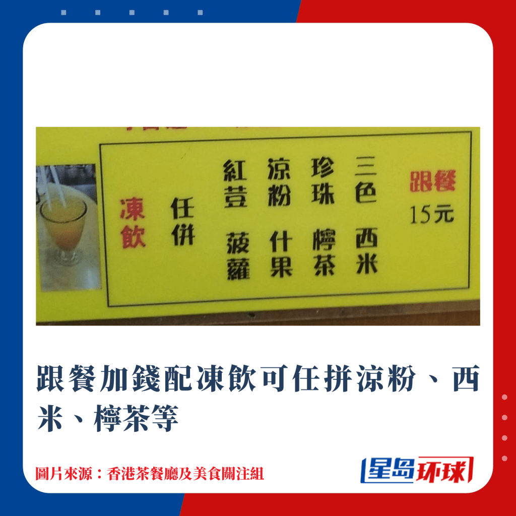 跟餐加錢配凍飲可任拼涼粉、西米、檸茶等