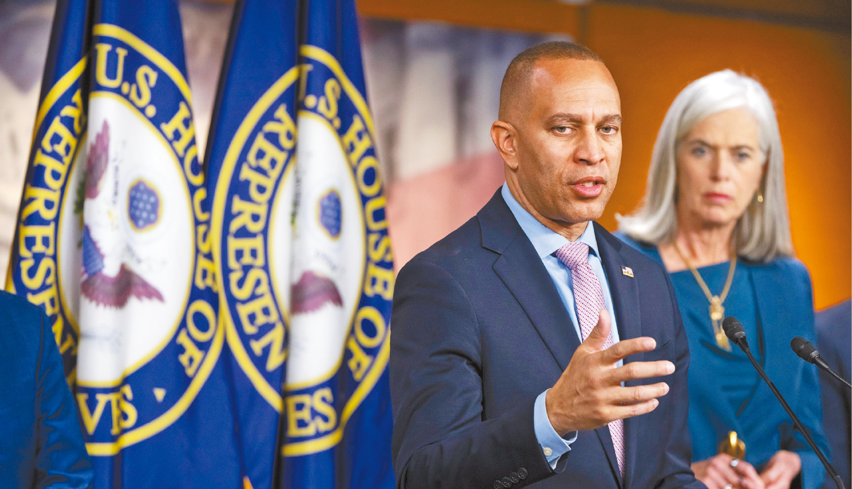 民主黨雖然未能奪取眾議院控制權,但杰弗里斯(Hakeem Jeffries)仍獲黨友支持,成功連任少數黨領袖,他承諾愿與共和黨尋求共識,但新一屆國會若出現極右政策,他必定會全力反抗。