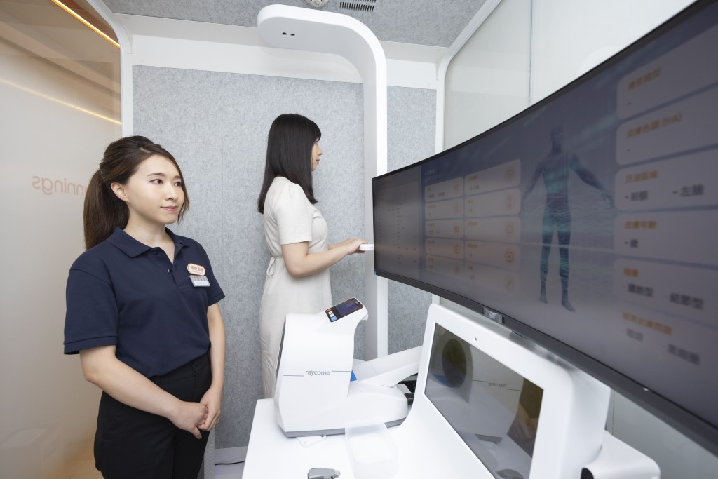 ▲“萬寧智能健康站”設于中環國際金融中心商場的萬寧內,顧客可進行AI智能健康評估,5分鐘即可獲得20多項結果。