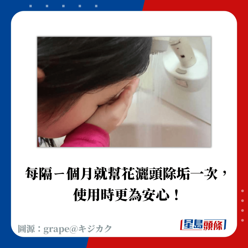每隔ㄧ個月就幫花灑頭除垢一次, 使用時更為安心!