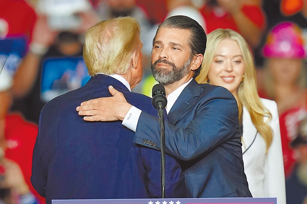 ▲消息人士告訴路透,特朗普愈發依賴長子小唐納(中)的建議,不僅讓其掌新人事話語權,還讓他取代妹妹伊萬卡的位置,一躍成家族中最有影響力的顧問。 美聯社