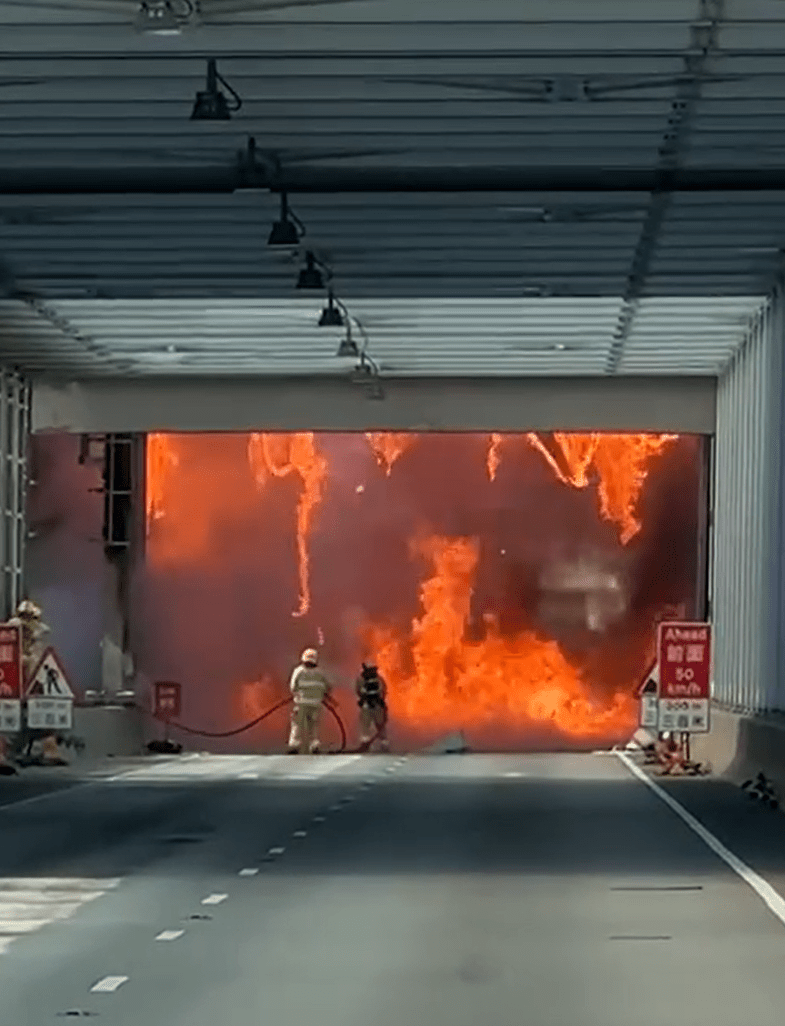 消防到場開喉救火。fb:香港人香港地交通資訊群