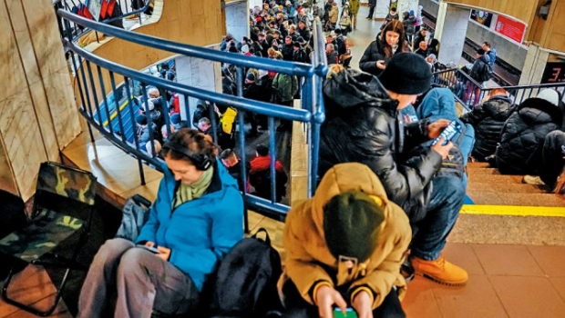 俄羅斯周四大規??找u烏克蘭的能源基礎設施,基輔市民進入一個地鐵站避難。