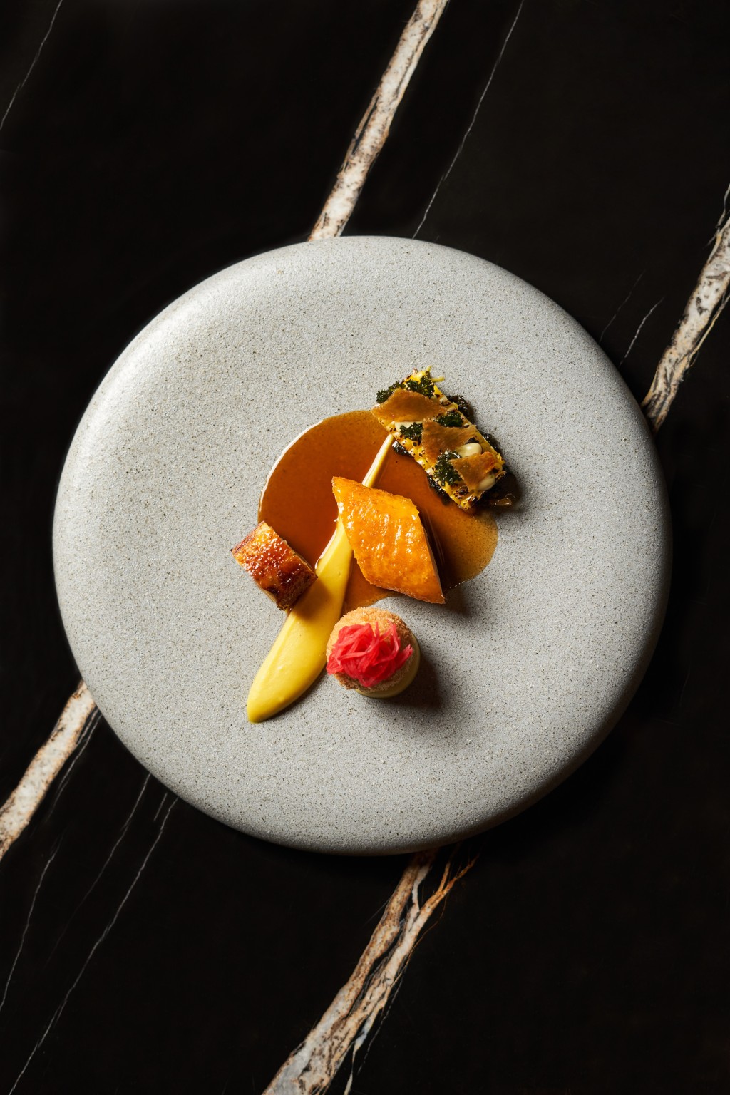 若喜歡具新鮮感的西餐,新派法國餐廳Auor.月的菜式可滿足你。新加坡籍主廚Edward Voon將亞洲風味與經典法國菜合一,讓客人感受煥然一新的高級法菜。餐廳新推的嘗味菜譜,以多款時令優材食材設計成4道菜($980/位)及6道菜($1,480/位)法國菜餐單,可品嘗如西班牙五花腩、鴿子伴黑蒜及蘿卜等味道層次豐富的法式美食。其中野生鯧魚伴梅菜及白酒牛油汁的亮點,在于Edward將梅菜蒸煮,以保留原有的口感和香氣,醬汁用壽司醋、慢煮魚湯與輕盈白奶油等制成,加上煮得嫩滑的野生鯧魚肉,味道鮮美可口。魚子醬配西西里紅蝦配搭花椒、咸蛋及脆魚皮,效果充滿驚喜。