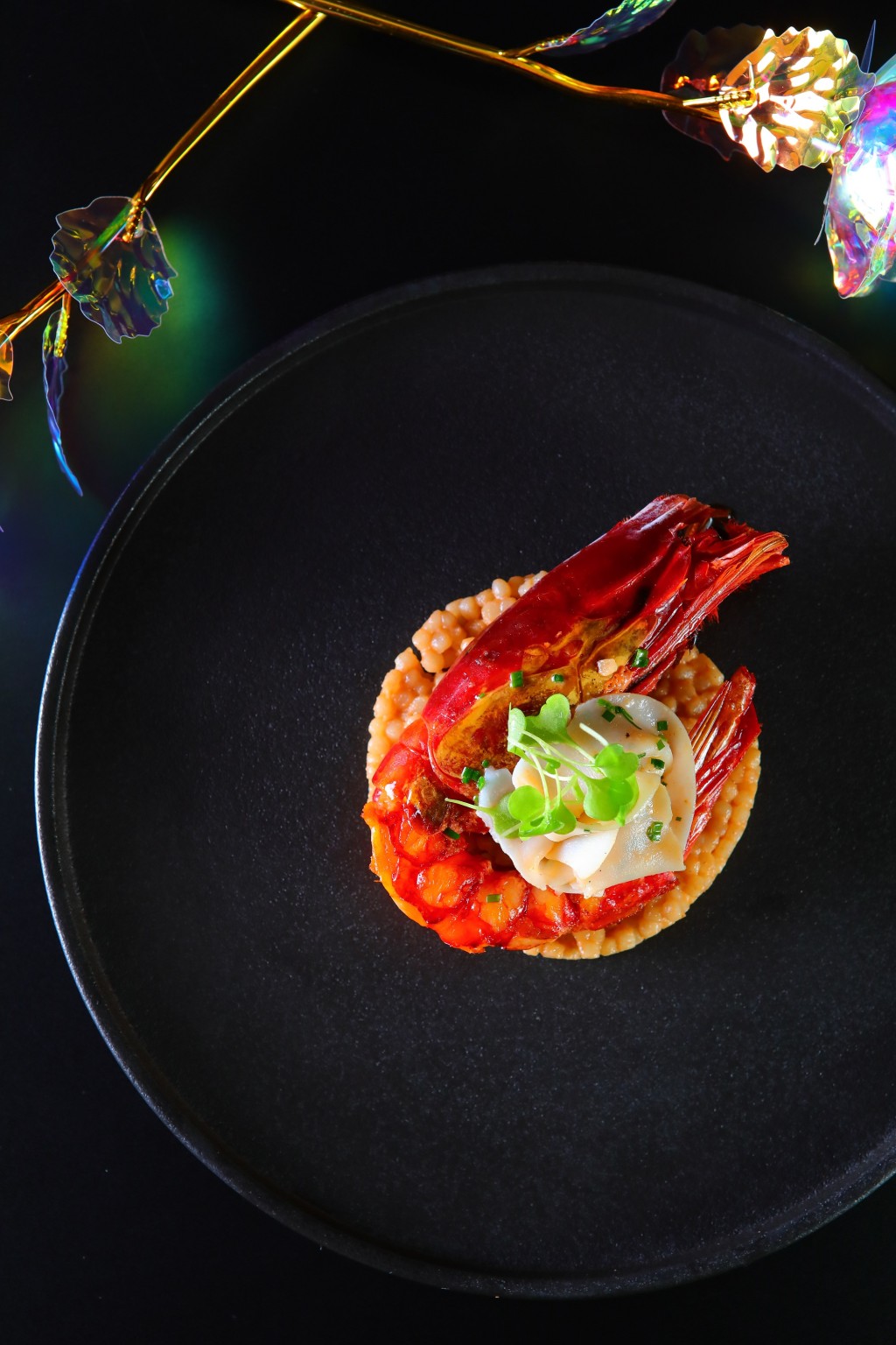 頭盤的選擇有凍意式云吞配煙熏螯蝦、日本A4和牛伴龍蝦油法式面包多士,以及日本紅帝王蟹蛋泡沫等,屬清甜鮮美的開胃西餐。主菜選材豐富,例如西班牙紅蝦配北非小米,佐以干魷魚及夏威夷果仁醬,并有慢煮羊肉配卡蒙貝芝士番薯醬、美國頂級牛柳配香煎山楂鵝肝等,菜式利用配搭得宜的食材及自制醬汁,展現地道歐陸菜濃郁鮮香的飲食精髓。