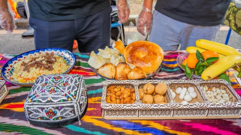在美食長廊,各國留學生精心布置攤位,制作特色美食,呈現“舌尖上的文化盛宴”。土耳其的碎肉薄餅、法國的可露麗與紅酒、委內瑞拉的煎玉米餅、馬來西亞的椰漿飯等美食香氣四溢,讓前來品嘗的師生大呼過癮。塔吉克斯坦攤位前,傳統手抓飯和名菜qurutob吸引了不少學生駐足。美國攤位的漢堡與巧克力豆餅也備受歡迎,商務英語系的吳同學興奮地說:“美國同學們特別熱情,美食也超棒!”