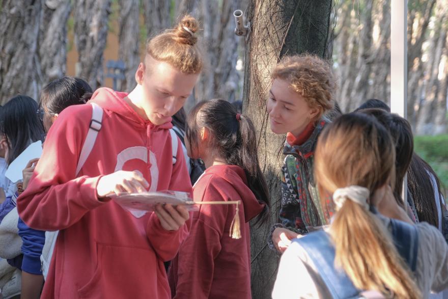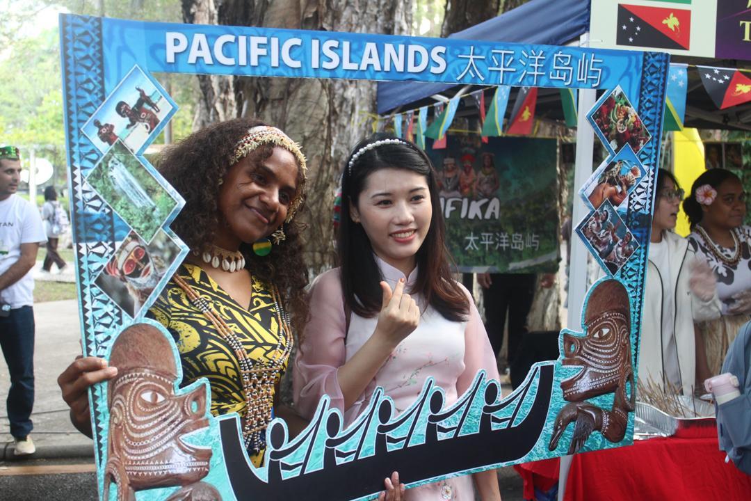 現場不僅有美味佳肴,更有精彩的文化展示。秘魯攤位用生動的海報講述本國地理與歷史,越南和俄羅斯留學生穿上民族服飾,與中國學生共舞,歡聲笑語感染了在場每一個人。作為亮點,中國學生設置的“非遺攤位”展示了精致的漆扇藝術,為活動增添了濃厚的傳統文化韻味。