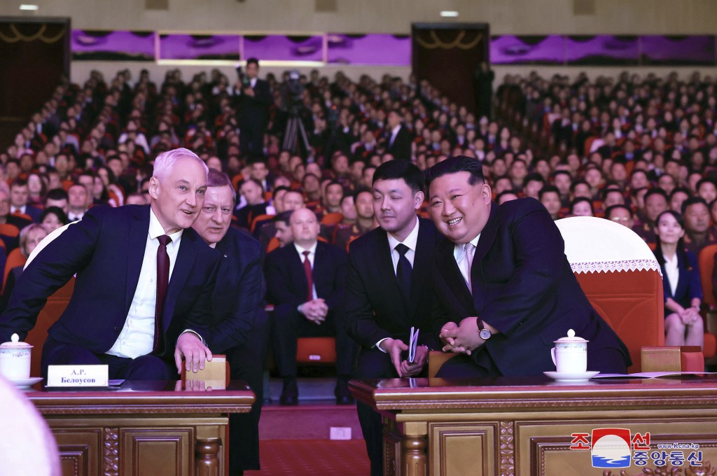 ▲金正恩招待別洛烏索夫看表演。美聯社