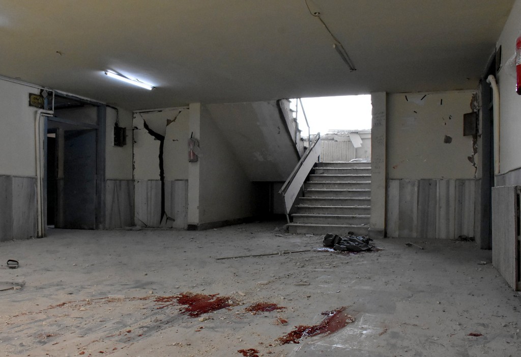 ▲阿勒頗市大學城遭到叛軍炮擊,造成4名平民死亡,地上血跡斑斑。新華社