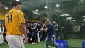 師生團抵臺洲際棒球場后,先進行球場介紹,并體驗棒球打擊活動,包括馬龍與奧運射擊金牌楊倩都拾起球棒練習打擊,馬龍前2次擊球都打到T座,第3次后順手多了,連續3次順利將球打出,現場響起掌聲與歡呼,馬龍也靦腆笑說“前兩次是錯誤的示范”。