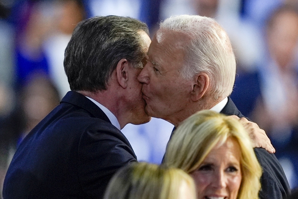 ▲2024年8月19日民主黨全國代表大會上,拜登親吻韓特。 美聯社