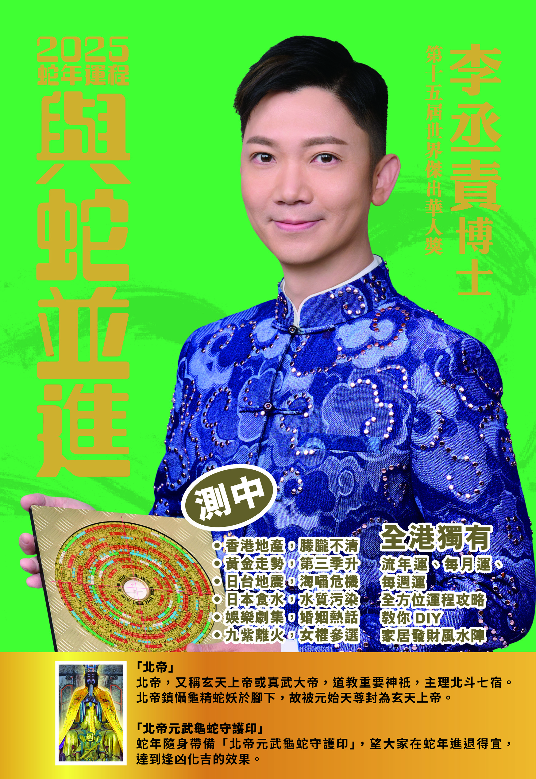 李丞責師傅最新推出《與蛇并進》蛇年生肖運程書,當中內容非常詳盡,既有12生肖運程、蛇年趨吉避兇方法、九大方位風水布陣、化太歲增運法等,為各位好好預備迎接蛇年新挑戰!