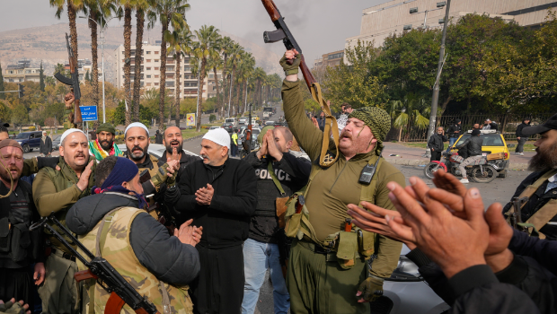 ▲圖為攻下敘利亞首都大馬士革的叛軍士兵在街頭上慶祝。(圖 / 美聯社)