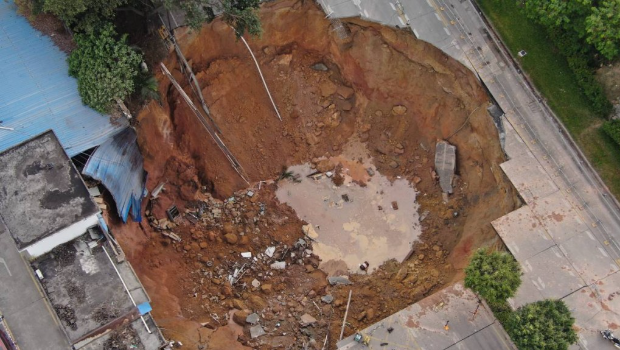 12月4日23時許,深圳寶安區航城街道洲石路深江鐵路5標段施工現場突發地面坍塌,坑洞寬度橫跨7車道深數十米,內有水土混合的泥漿。當地通報現場有13名作業人員失聯。