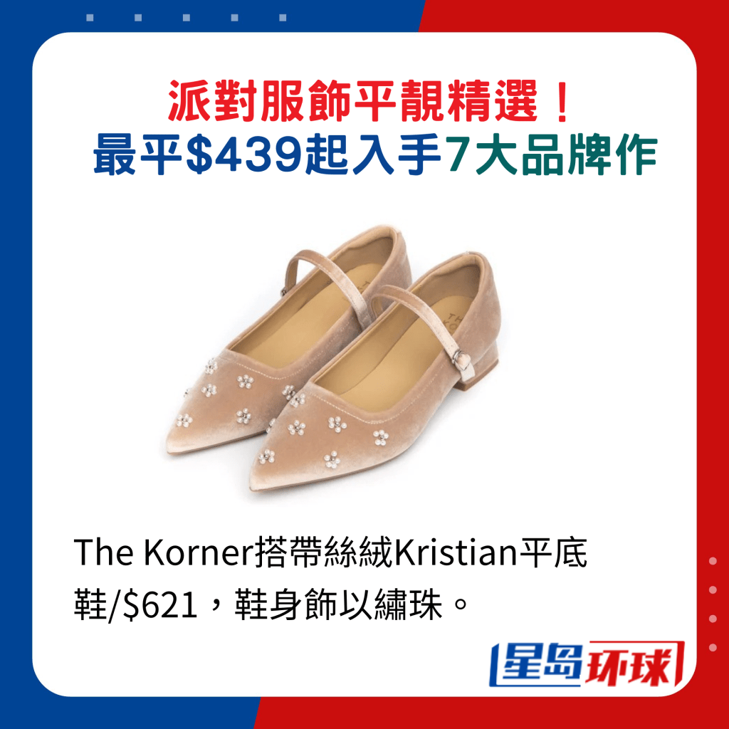 想為派對造型加分?! 選對配飾相當重要,Bling Bling閃亮設計最是迎合節日色彩。CHARLES & KEITH夢幻節慶系列包羅各款手袋及鞋履,以經典的黑、 銀、粉紅及金色為主調,統統用上水 晶、閃亮元素及金屬光物料裝飾,華麗感十足。 其中一款水晶手袋,肩帶綴以金屬球裝飾,亦可將肩帶放入金屬球當成手挽,靈活配襯不同派對造型。 小資女熱捧的香港鞋履The Korner,也有亮麗選擇,一款絲絨制平底鞋,綴以立體的繡珠裝飾,典雅又高貴。