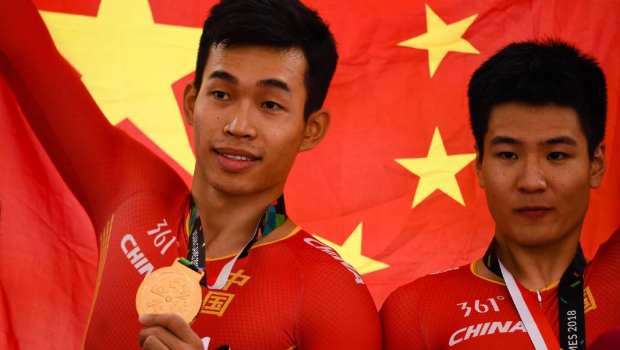 中國單車名將徐超(左)終年30歲。圖為2018年亞運會中奪得男子團體競速冠軍。新華社