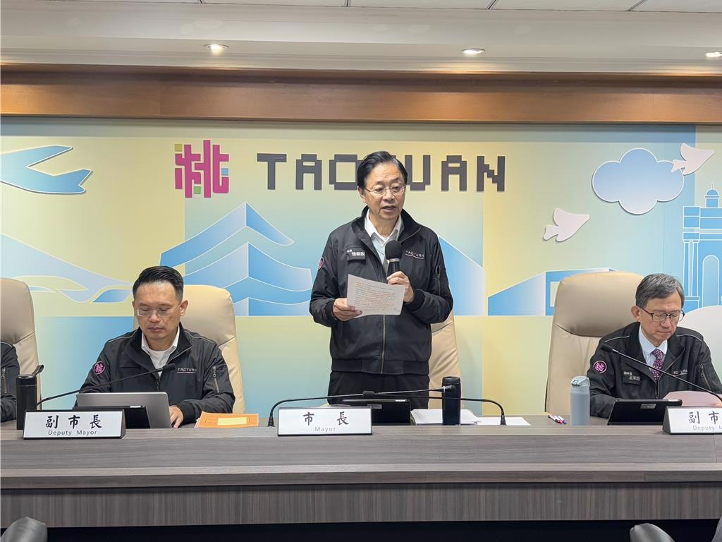 ▲桃園市長張善政(中)11日主持市政會議時談及市府團隊各項建設進度超前,表示明年將會有更多推動計劃。中時