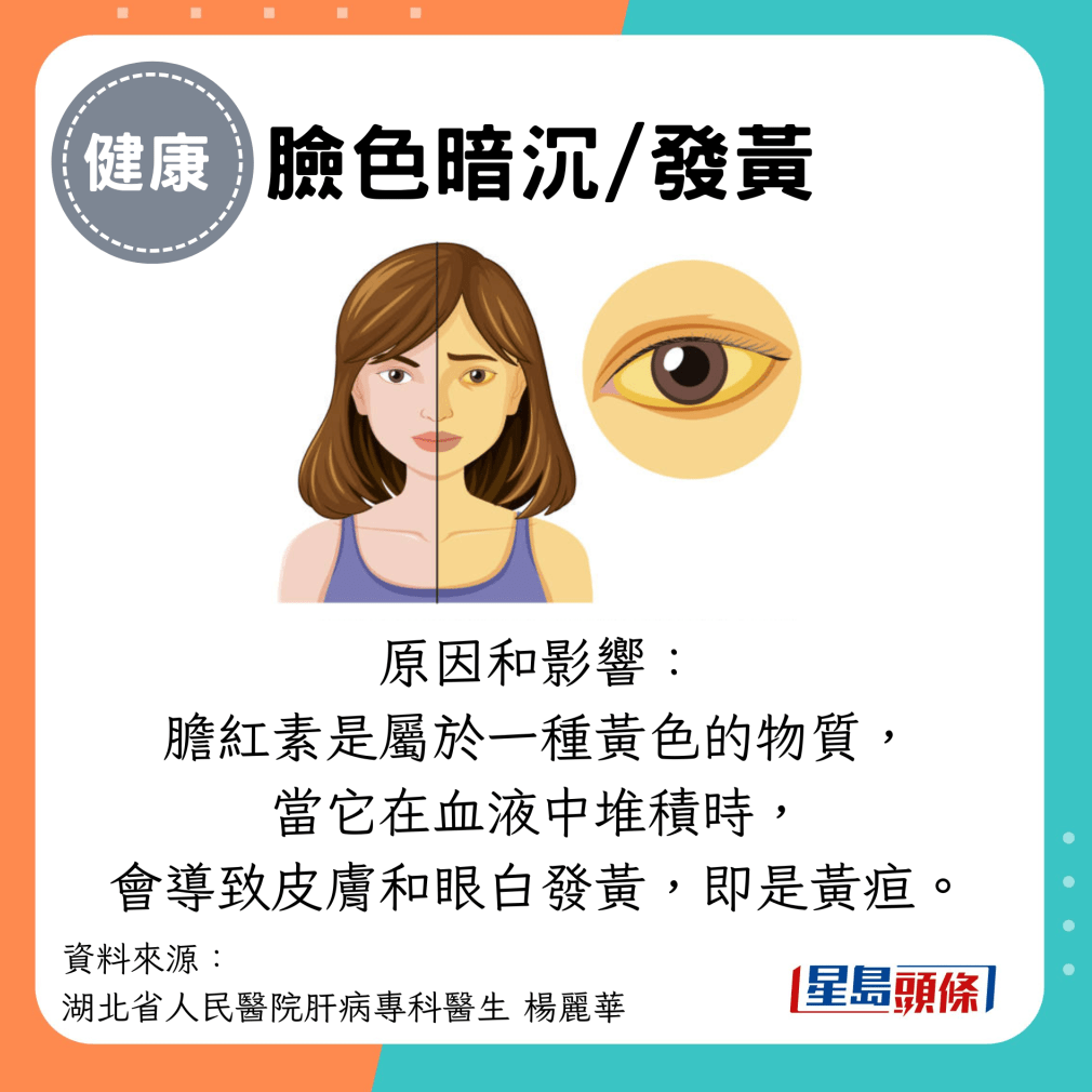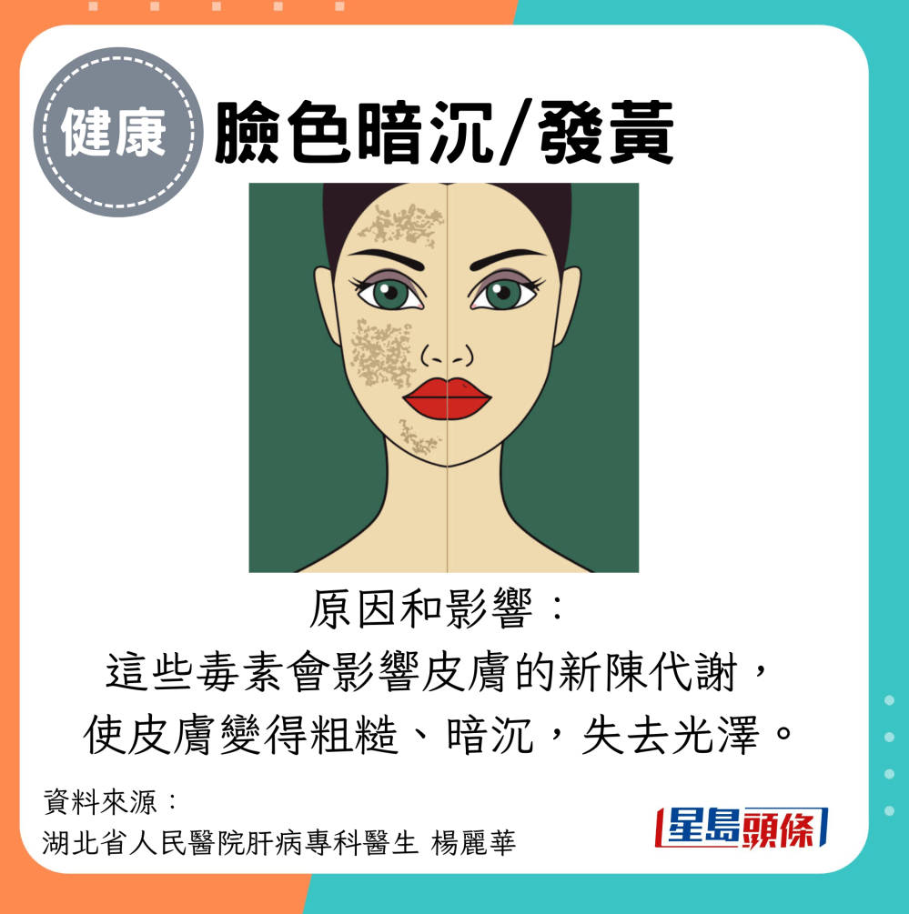 肝病征兆 | 1. 臉色暗沉、發黃