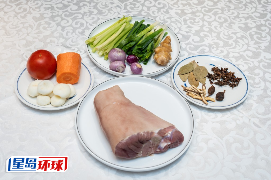 以多種蔬菜及香料為豬手提升鮮味。