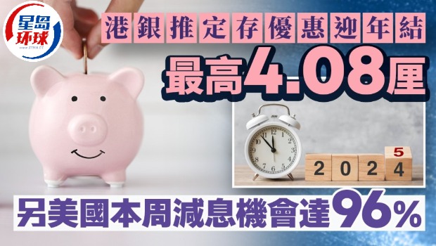 隨著圣誕及年結將至,不少銀行推出1個月高息定存優惠吸資金,其中一個38天存期優惠更達4.08厘;同時,較多人承造的3個月期定存,同樣不乏4厘選擇。另一方面,美國聯儲局將于香港時間周四(19日)凌晨公布議息結果,根據fedwatch數據顯示,市場目前預計減息0.25厘的機會率已增至96%。