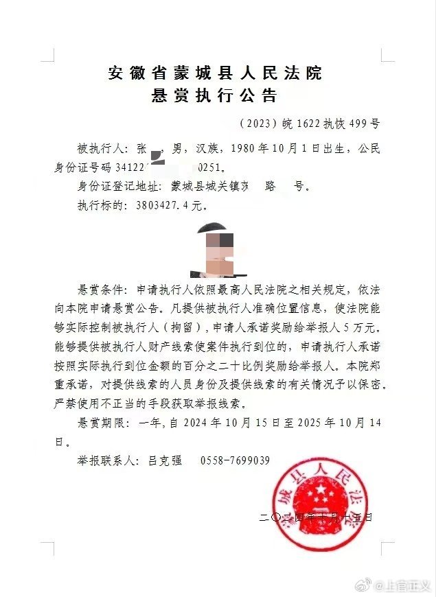 據指是代孕機構幕后老板的張某,曾被蒙城縣人民法院列為失信人名單。