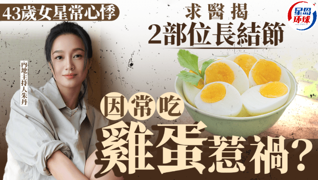 常吃雞蛋也影響健康?內地43歲知名主持人朱丹12月11日在直播中透露,心悸癥狀近年越來越嚴重,到醫院檢查后更發現她體內有2個部位長出結節,醫生表示原來與她多年常吃雞蛋的飲食習慣有關。