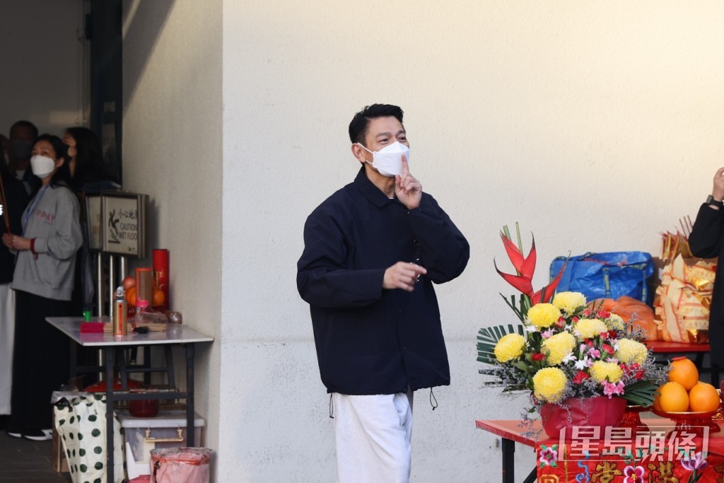 劉德華則向歌迷揮手示意,又做安靜手勢等,他上香后也刻意走前幾步,繼續向歌迷揮手,有香港歌迷更趁機送上應援手幅,成功獲劉德華仔親手接收,問劉德華狀態OK嗎?他雙手舉姆指示意非常好。而劉德華上香后,劉太朱麗蒨也有上前拜神。在工作人員準備好后,劉德華率眾舉起手打氣,為今晚表演預熱。
