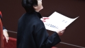 黃珊珊發現自己蓋錯章,抬頭詢問韓國瑜怎么辦。
