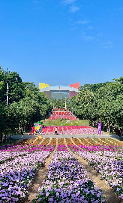 ▲深圳市民廣場南廣場向來都被稱為市民花田,面積約3,000平方米,曾經種植向日葵及粟米,最近換上了太空格?;?、太空鳳仙,以及太空指甲花等接近6,000株花朵。圖片來源:截圖自小紅書@深圳光影