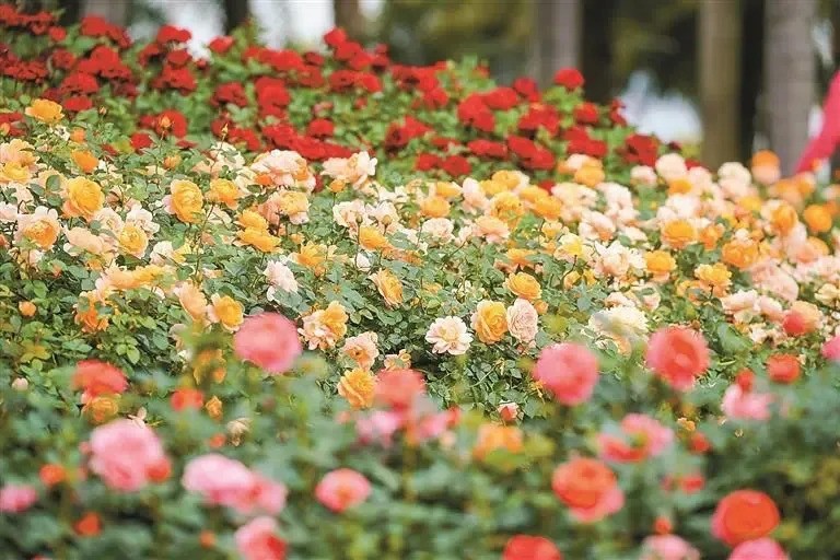 除了菊花展外,深圳市另一人氣打卡熱點,必屬前海石公園門前盛放的月季花。