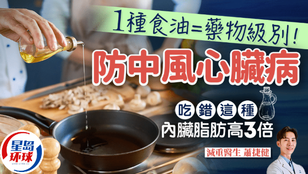 【好油脂/食油/心血管健康】用什么食油煮食更健康?有醫生指,常用這種食油煮食可大幅降低患心血管病風險,效果更形同藥物級別,有助預防中風、心臟病等病。他推介4種健康食油,并提醒大眾勿用錯一種食油,否則內臟脂肪反增3倍,易引發心血管病。