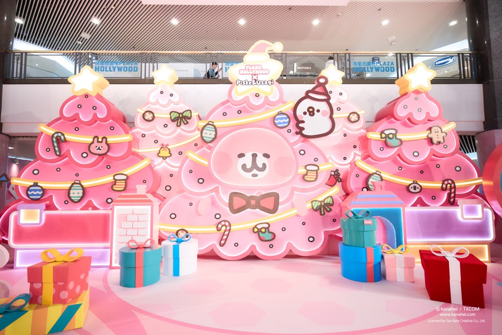 一走進荷里活廣場 x Piske and Usagi“玩轉粉紅游樂園”的夢幻拱門門廊,就見化身為圣誕樹精靈的粉紅兔兔Usagi熱情地歡迎大家;踏入繽紛世界就可跟P助與粉紅兔兔坐在圣誕雪橇禮物車上,化身為圣誕老人,一起派圣誕禮物,展開冬日冰雪旅程。P助還為大家準備了圣誕禮物,記得前往神秘魔法禮物盒去接收奇妙祝福!
