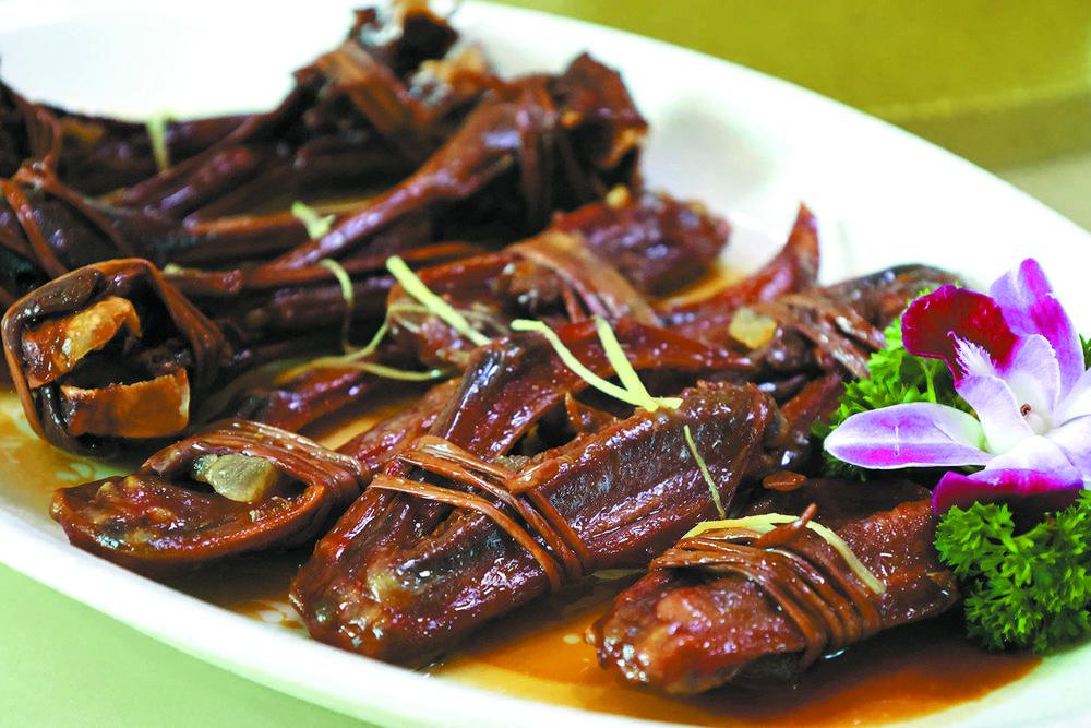 憑借獨特的風味和技藝,橫山鴨扎包享譽珠海及周邊城市乃至港澳地區。令人意想不到的是,極負盛名的鴨扎包竟來源于一場機緣巧合。清朝光緒年間,美食愛好者葉鴻波從新會三江皮子村來到時屬睦洲的五權鄉橫山街(今屬斗門區蓮洲鎮)定居,做打銀和布匹生意。一次偶然機會,葉鴻波嘗試把鴨腳、鴨腸包在一起腌制后清蒸,結果出乎意料地美味。逐漸地,葉鴻波摸索出制作最原始版本的“鴨扎包”美食獨特技藝,其兒子葉潤超也在他的影響下開始學習。