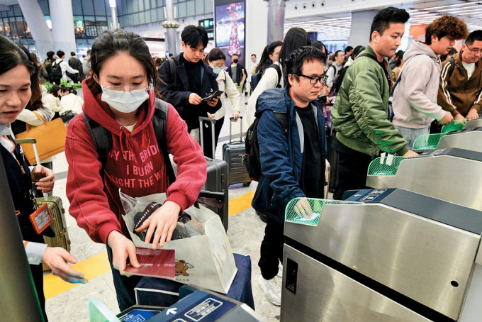 圣誕節又到了,不少市民已準備好到外地歡度佳節,高鐵站昨出現離境人潮。