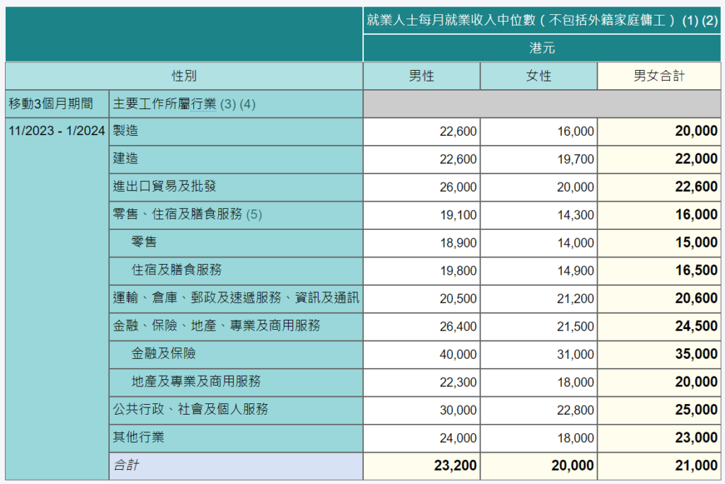 然而,再根據最新的收入數據,金融和保險行業的中位數收入是35,000港元,這是香港所有主要行業中最高的。