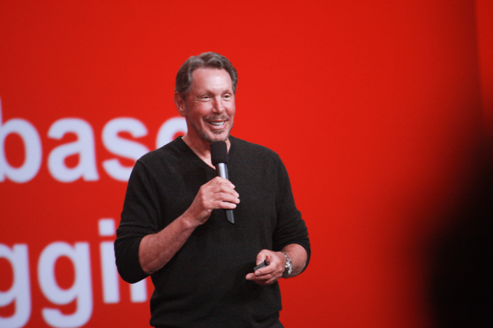 甲骨文創辦人艾利森凍齡有方。 圖為2013年甲骨文全球大會演講照。
